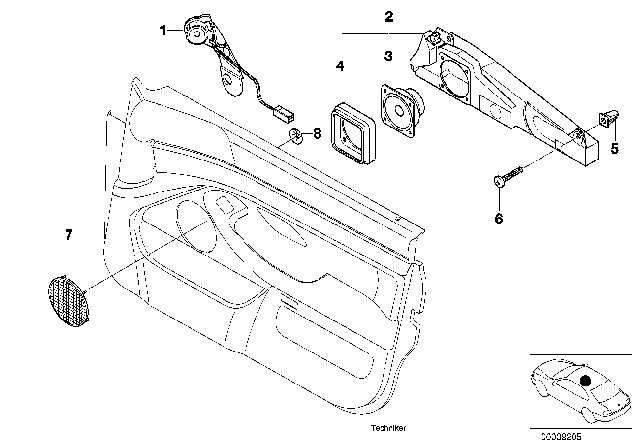 65138360775Left front door loudspeaker box- Extra Info: STEREO SYSTEM