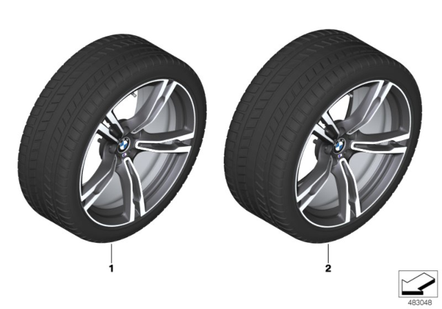 In the EU Member States and in Switzerland the extract from the EU type approval (stored for the wheel/ tyre combinations on the EF Home page or KSD DVD, in Germany also on the Infonet under BMW > Aftersales > Zubehoer > Gutachten) must be issued to the customer. This must be kept in the vehicle. An additional change to the vehicle documents may be required on a country-specific basis. Standard tyres without emergency running properties Michelin Pilot Alpin 5 Disc wheel, ferric grey