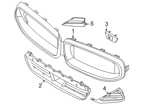 Diagram (1 of 1): Front bumper & grille - Grille & components