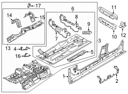 Diagram (1 of 1): Pillars, rocker & floor - Floor & rocker